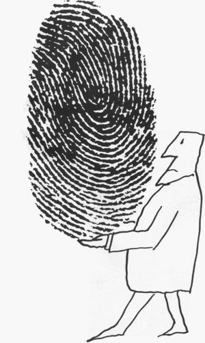 No two people -- not even identical twins -- have ever been shown to share fingerprints. The friction ridges that cover the skin on your hands and feet are formed by the seventeenth week in the womb; at birth they have become so deep that nothing can alter them, not even surgery. Look at your fingertips: the patterns resemble finely detailed maps of the bypasses and exit ramps on modern roads. Experts use the nomenclature of the highway to describe them: there are spurs, bifurcations, and crossovers. Some people have fingertips that are dominated by "loops," others by "tented arches" or small circles that examiners call "lakes," or smaller ones still, called "dots." Collectively, these details are referred to as minutiae -- an average human fingerprint may contain as many as a hundred and fifty minutia points. To identify fingerprints, an expert must compare these points individually, until enough of them correspond that he or she feels confident of a match.